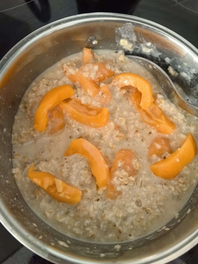 - Gotuję owsiankę na średnim ogniu i cały czas mieszam, żeby mi się nie przypaliła.