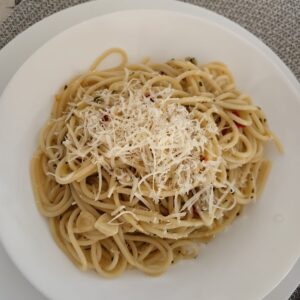 Spaghetti Aglio Oglio, a więc makaron spaghetti z czosnkiem, oliwą i papryczką chili to klasyk włoskiej kuchni. Co więcej jest proste, szybkie i tanie!